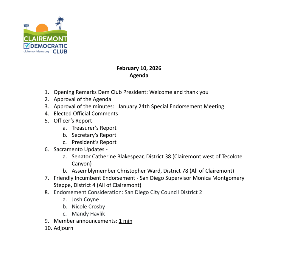 Also, REGISTER HERE FOR ALL CLAIREMONT DEM 2026 MEETINGS!