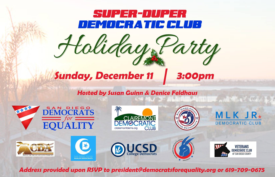 Address provided on RSVP by emailing San Diego Democrats for Equality President Will Rodriguez-Kennedy at president@democratsforequality.org, or call 619.709.0675.