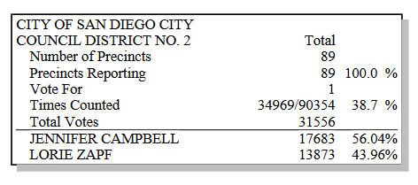 With 100% of precincts reporting, Jen Campbell won by 12 points!