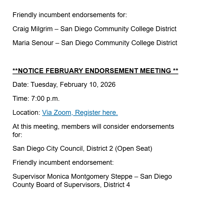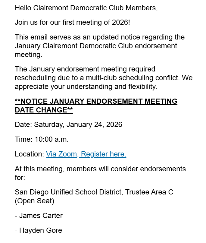 Also, REGISTER HERE FOR ALL CLAIREMONT DEM 2026 MEETINGS!